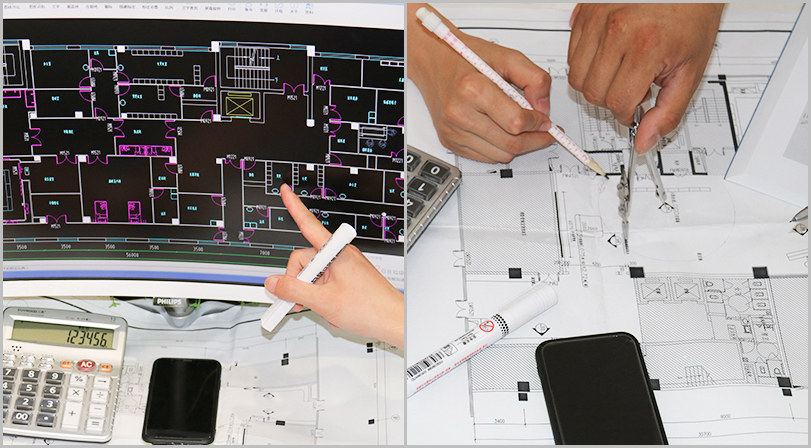 每承接一個(gè)工程,公司都會(huì)派出經(jīng)驗(yàn)豐富的技術(shù)團(tuán)隊(duì)上門(mén)勘察、實(shí)地測(cè)量,提供工程設(shè)計(jì)方案。測(cè)量各個(gè)房間尺寸及造型情況,做好記錄,做到心中有數(shù)。